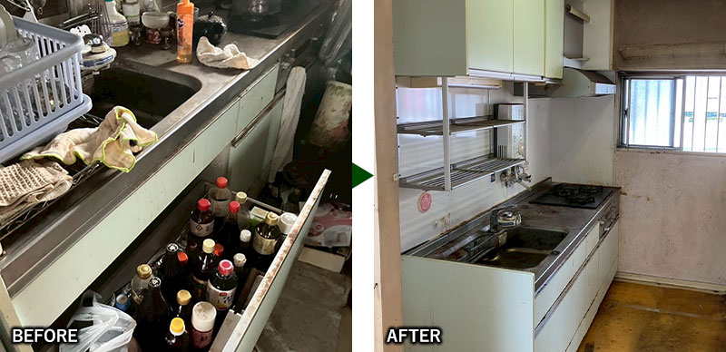 | 撤去内容 | 家具、家電、小物、生活ゴミなど 業務用冷蔵庫の解体 | ||