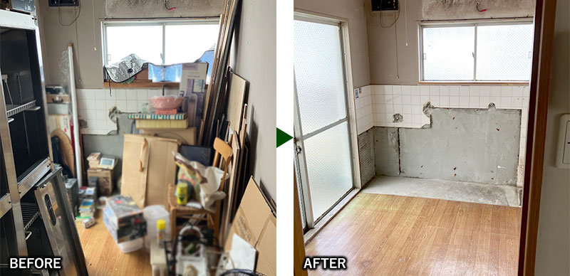 | 撤去内容 | 家具、家電、小物、生活ゴミなど 業務用冷蔵庫の解体 | ||